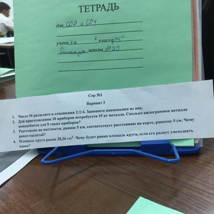 1. Число 56 разделите в отношении 2:1:4. Запишите наименьшее из них.