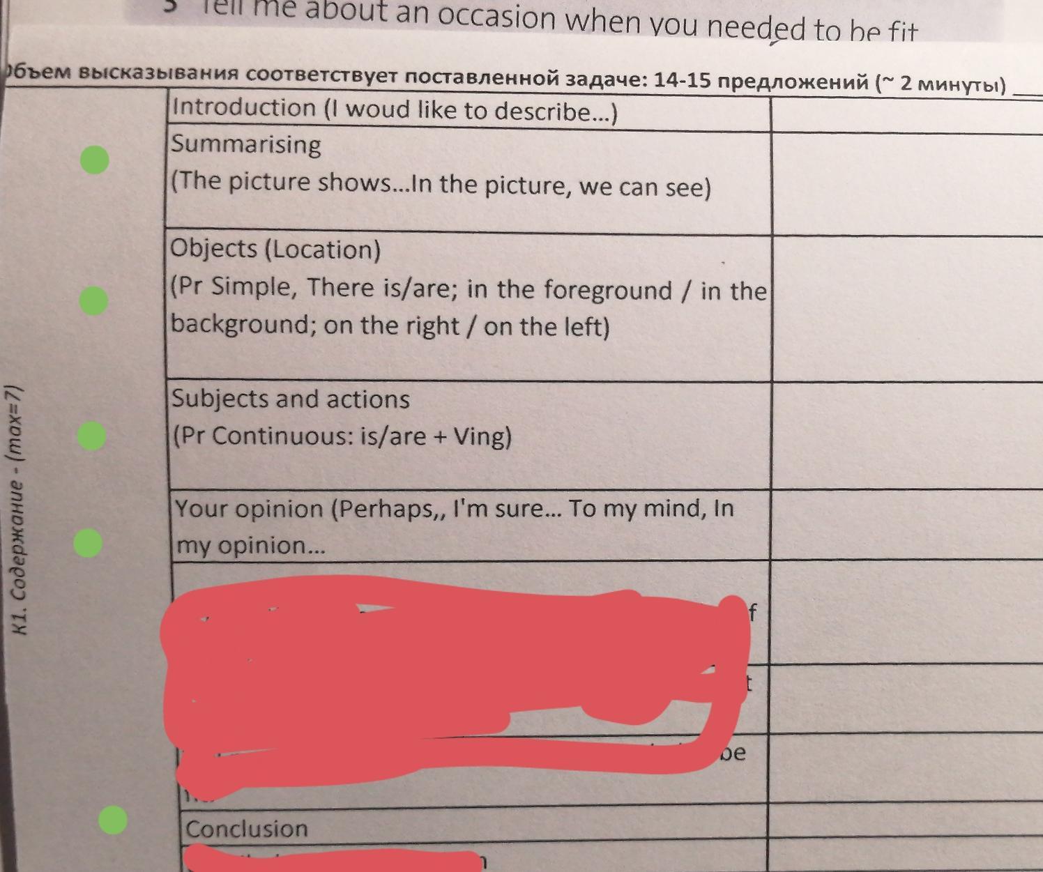 Доброе время суток. Нужно описать картинку ( вложение 1 ) по плану ( вложение 2 ). На каждый пункт ( всего 6 пуктов ) плана не менее двух предложений ( больше не надо ). В скобках показаны фразы, котрые желательно использовать.