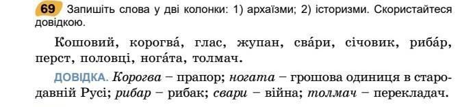 Архаїзми - глас, свари, рибар, перст, корогва, толмач.