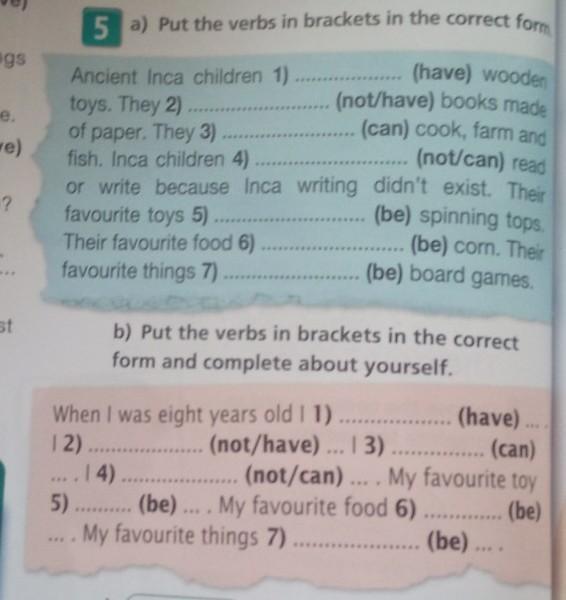 a) 1 have. 2 don't have. 3can . 4 can't. 5 are. 6 is. 7 are.