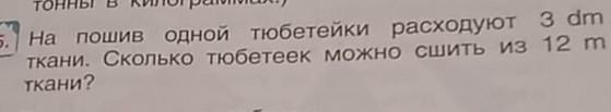 12 м=120 дм; 120:3= 40 (тюбетеек)