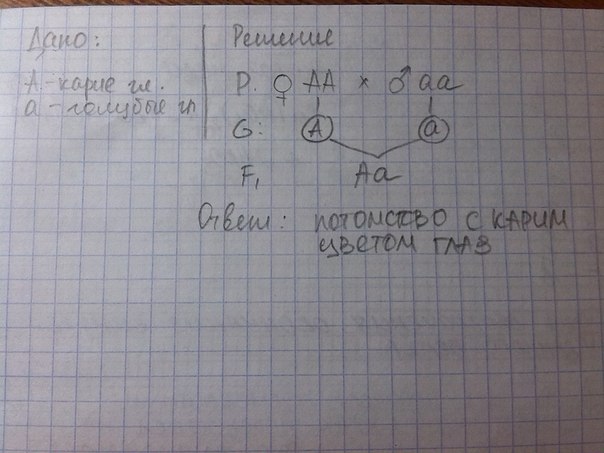 Кареглазая женщина в роду которой не было голубоглазых ,вступила в брак с мужчиной имеющий голубые глаза.вопрос: какое потомство по цвету глаз можно ожидать от этого брака
