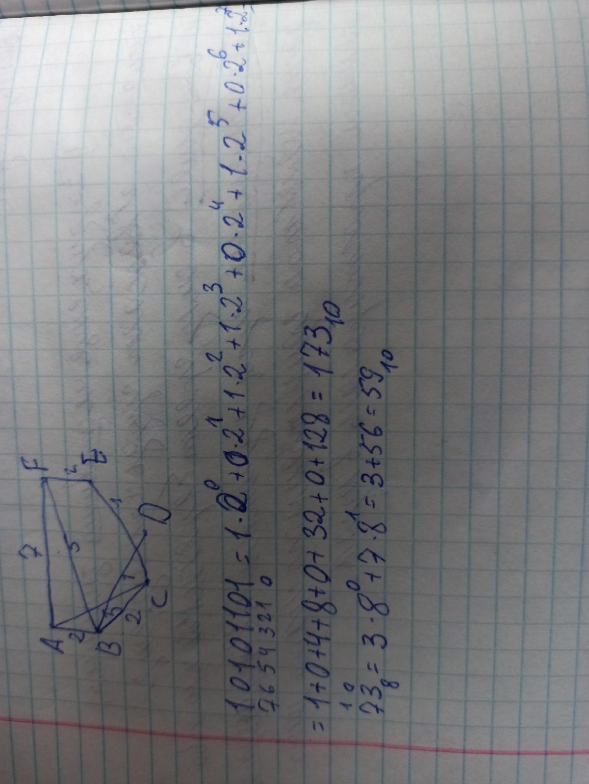 Сначала, задом наперёд я проставляю разряды цифрам (в примере 10101101 от нуля до семи, в 73 - 0 и 1). Дальше начинаю умножать так же, начиная с единицы в нулевом разряде.