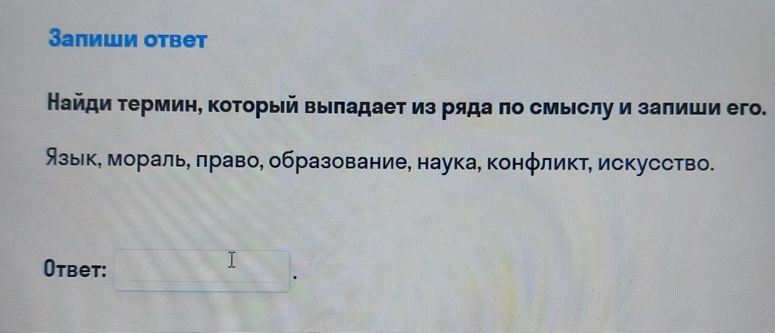 Я думаю это "конфликт" , тк остальные термины связаны с духовной связью, а "конфликт" с социальной