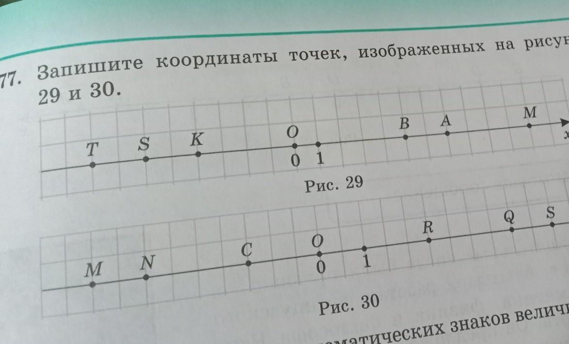 277. Запишите координаты точек, изображенных на рисунках 29 и 30. T S K о В А M 0 1 х Рис. 29 M N C 0 R S 1 0 18 Рис. 30 помагите пожалуйста мне пж пжп пж пж
