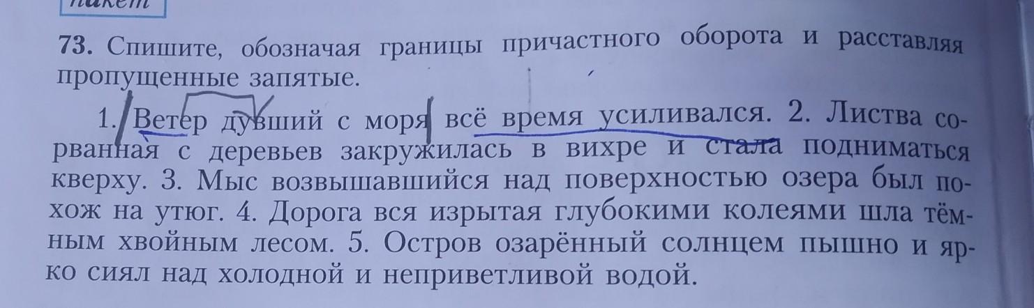1. Ветер, /дувший с моря/~~~, всё время усиливался.