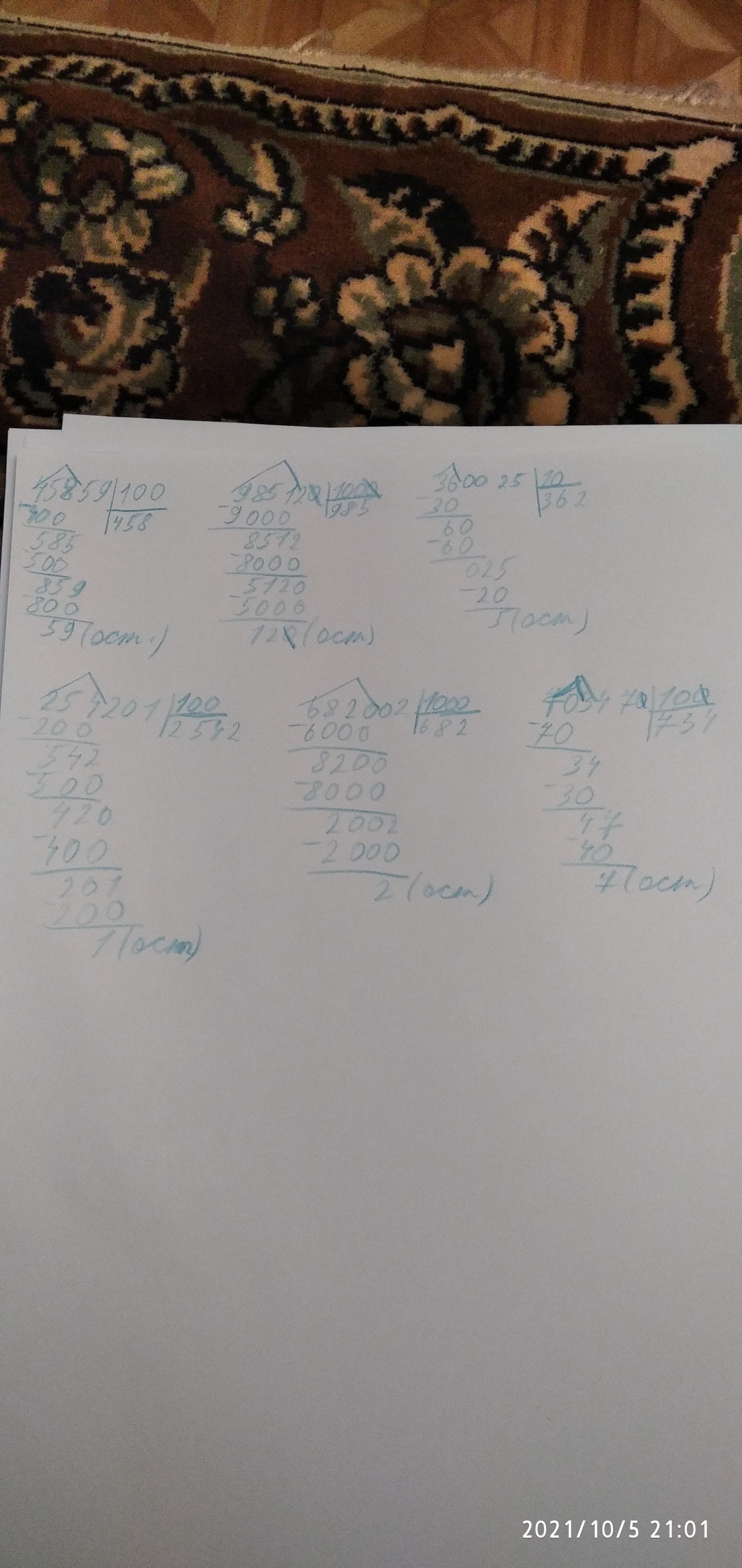 OMALLHEE3ADANIE Выполни деление с остатком 45 859:100 985120: 1 000 360 025:10 254 201 : 100 682002:1 000 703 470: 100 4