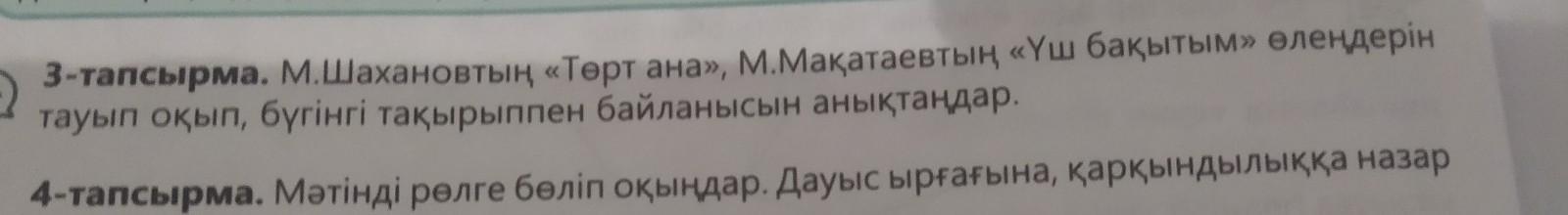 3-тапсырма. М.Шахановтың «Төрт ана», М.Мақатаевтың «Үш бақытым» өлеңдерін тауып оқып, бүгінгі тақырыппен байланысын анықтаңдар.