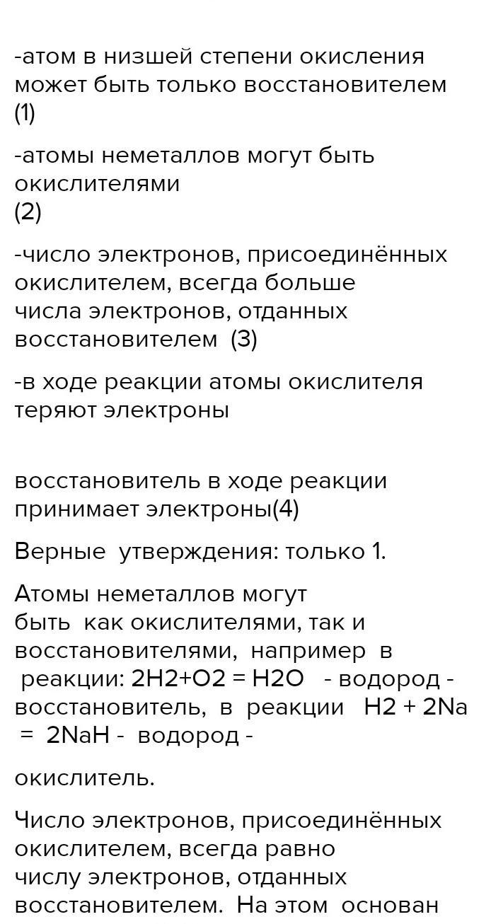 5.число электронов, присоединённых окислителем, всегда меньше числа электронов, отданных восстановителем