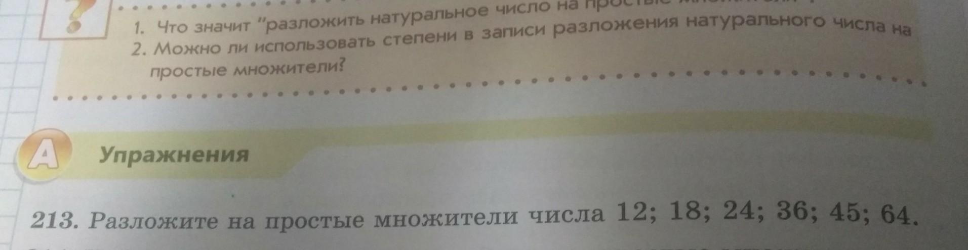 12 (2:2:3) 18(2:3:3) 24(2:2:2:3) 36(2:2:3:3) 45 (3:3:5) 64 (2:2:2:2:2)