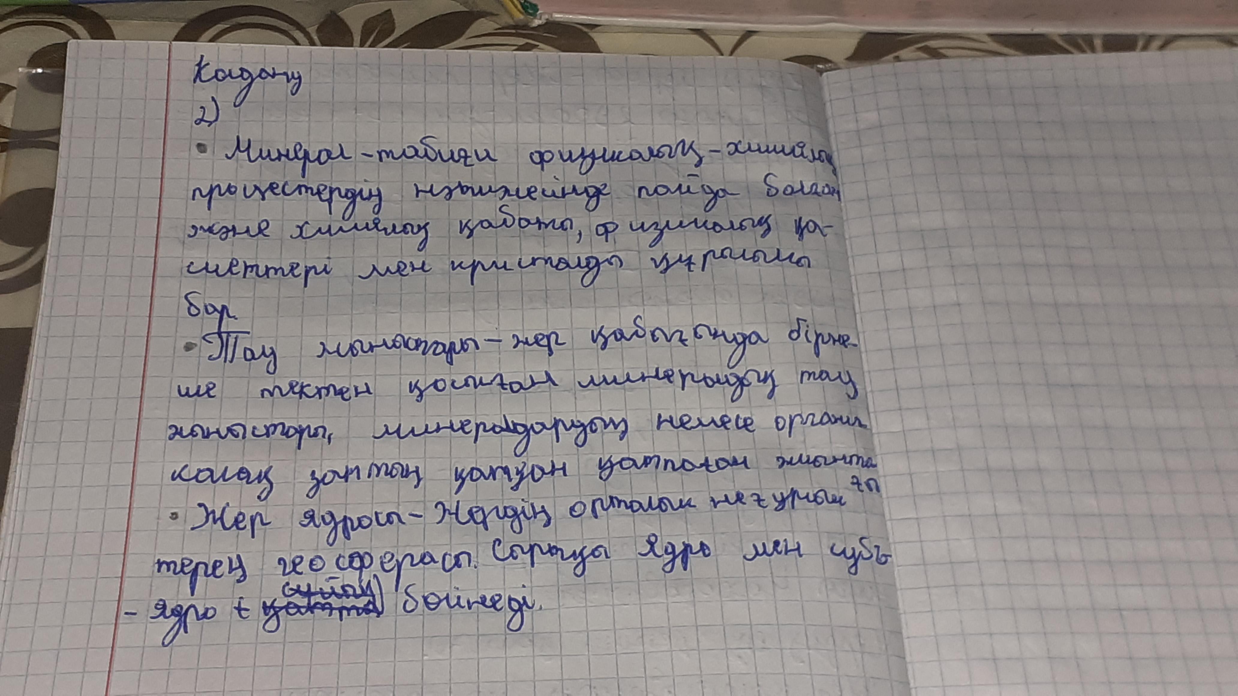1. Жер қыртысының заттық құрамының сызбасын құрастырыңдар. Жер қыртысы қабаттарының орналасу реттілігінің заңдылығын түсіндіріңдер.