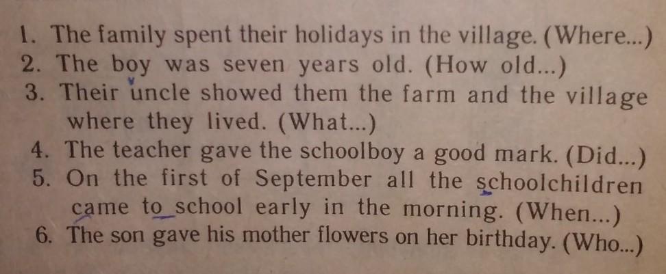 Напишите по одному вопросу к каждому предложению начиная их словами, данными в скобках