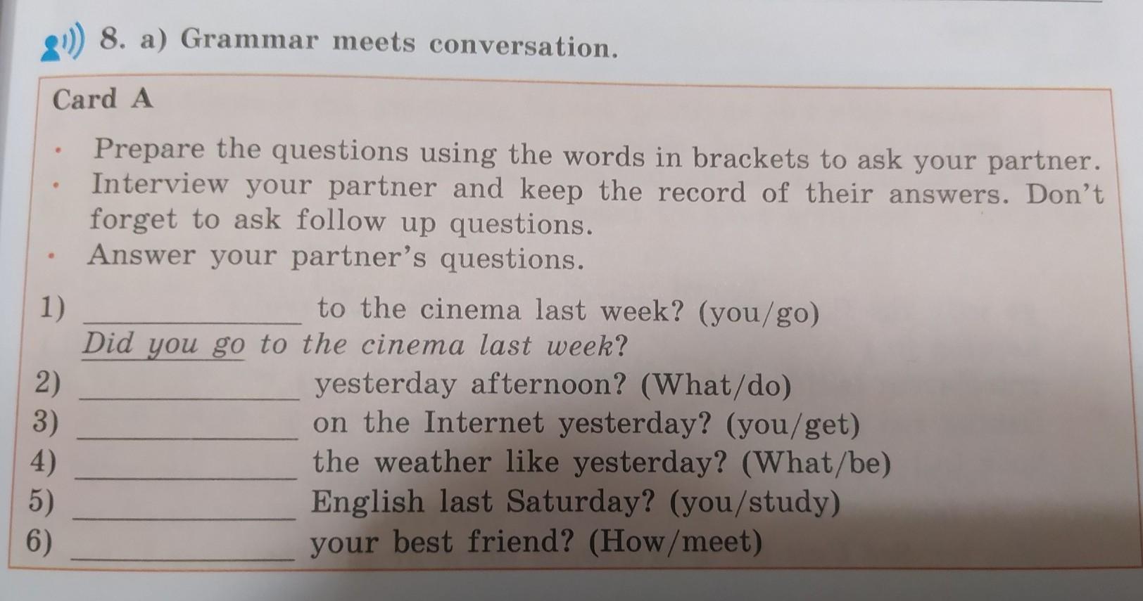 2) What did you do yesterday afternoon?