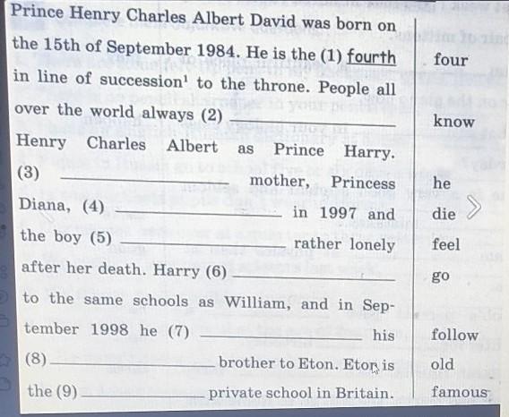 2)follow 3)old 4)famous 5) go 6)feel 7) he 8)khow