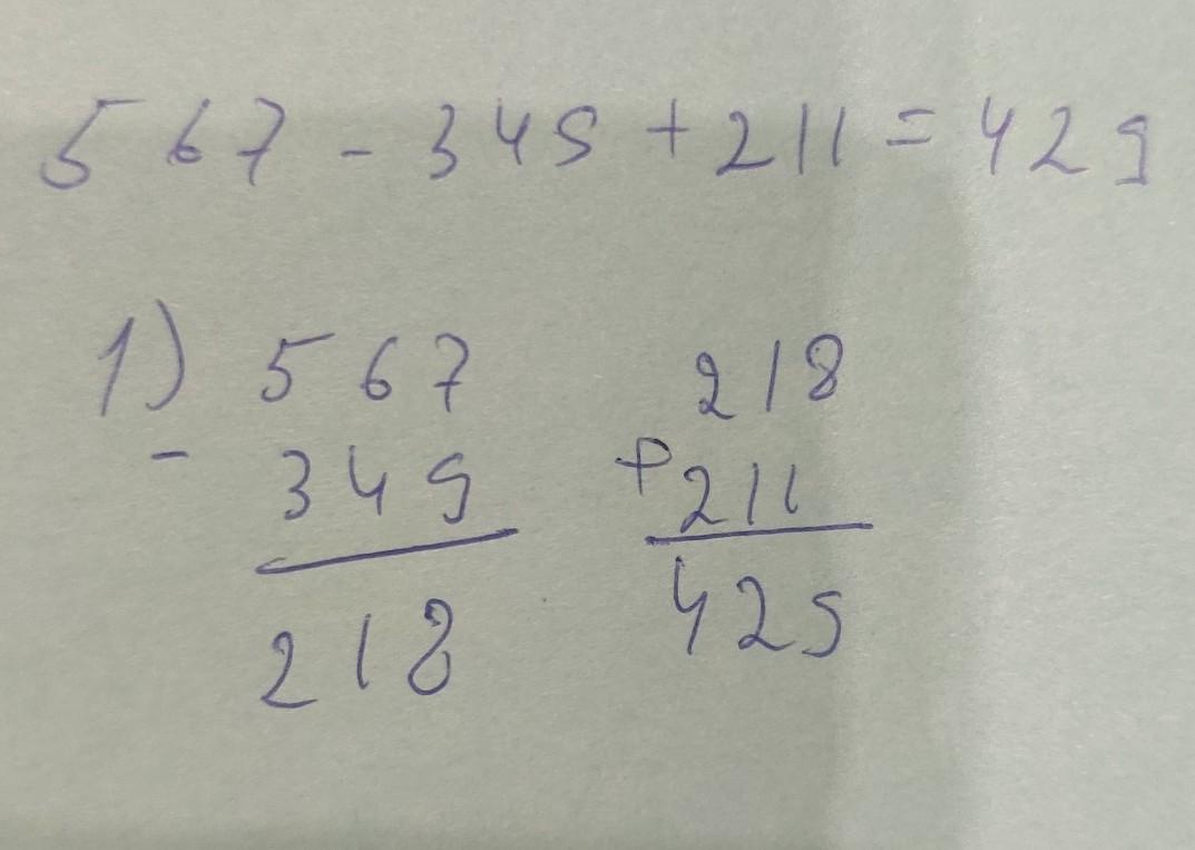 Может надо сделать по типу,1) 567-349=218 2)218+211=429