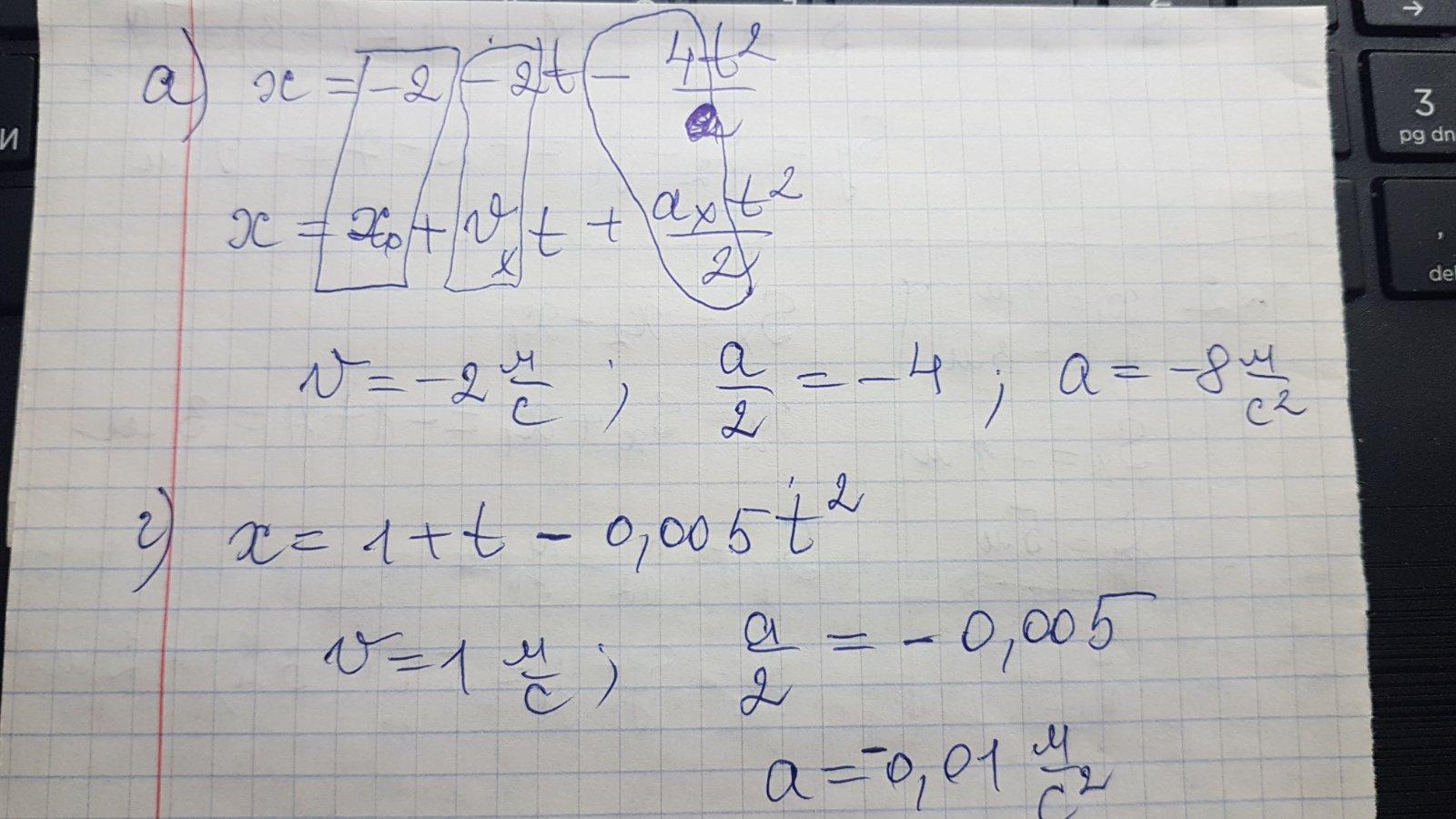 Зрівняння руху знайти швидкість руху та прискорення :