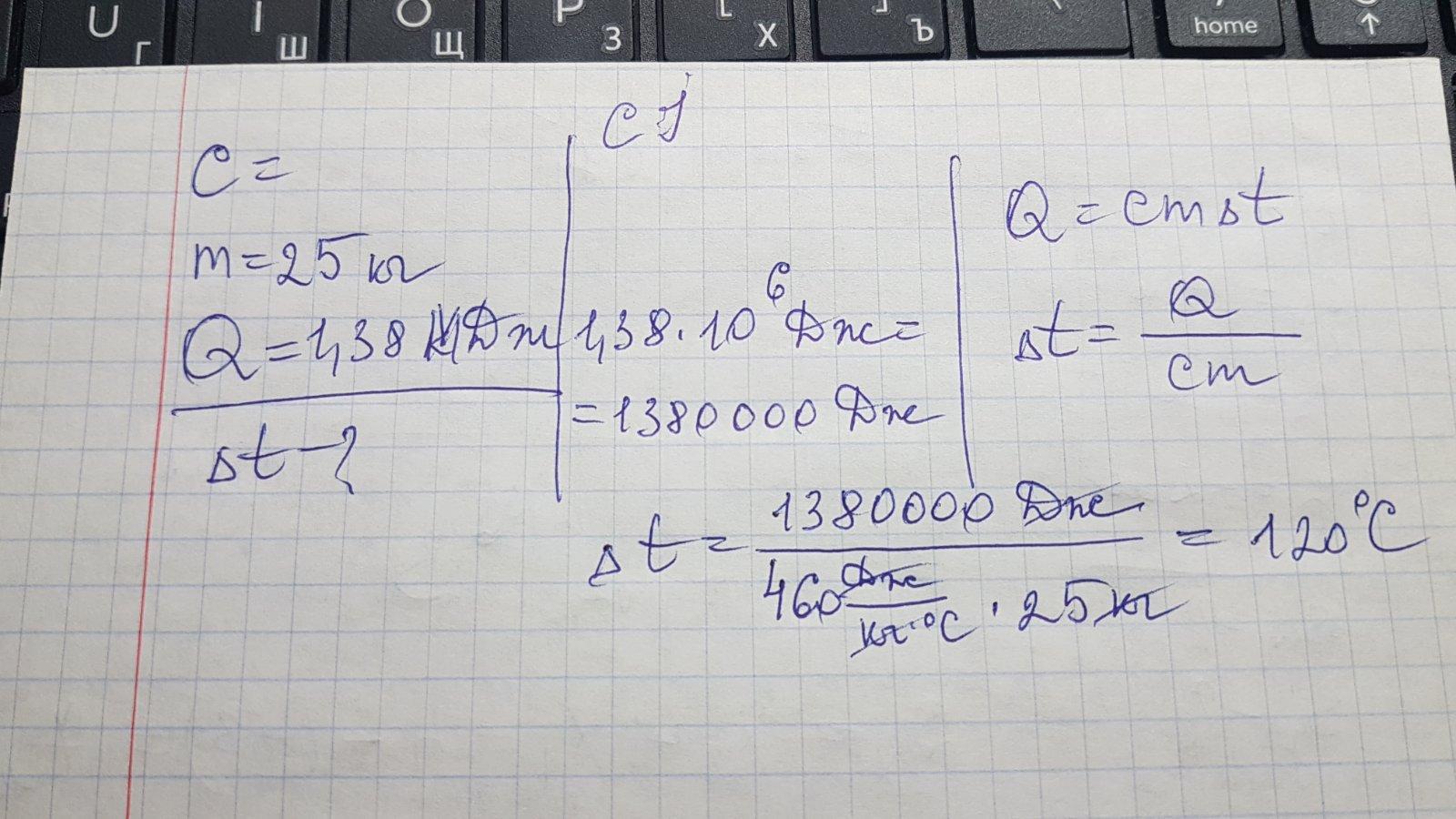 в дано с=460 Дж/кг·°С