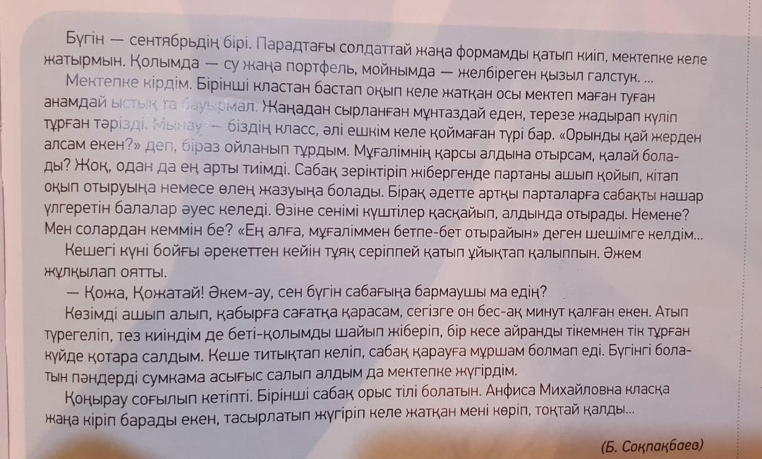 СРОЧНО! Пожалуйста, помогите с казахским языком. Нужно ответить на вопросы по тексту.