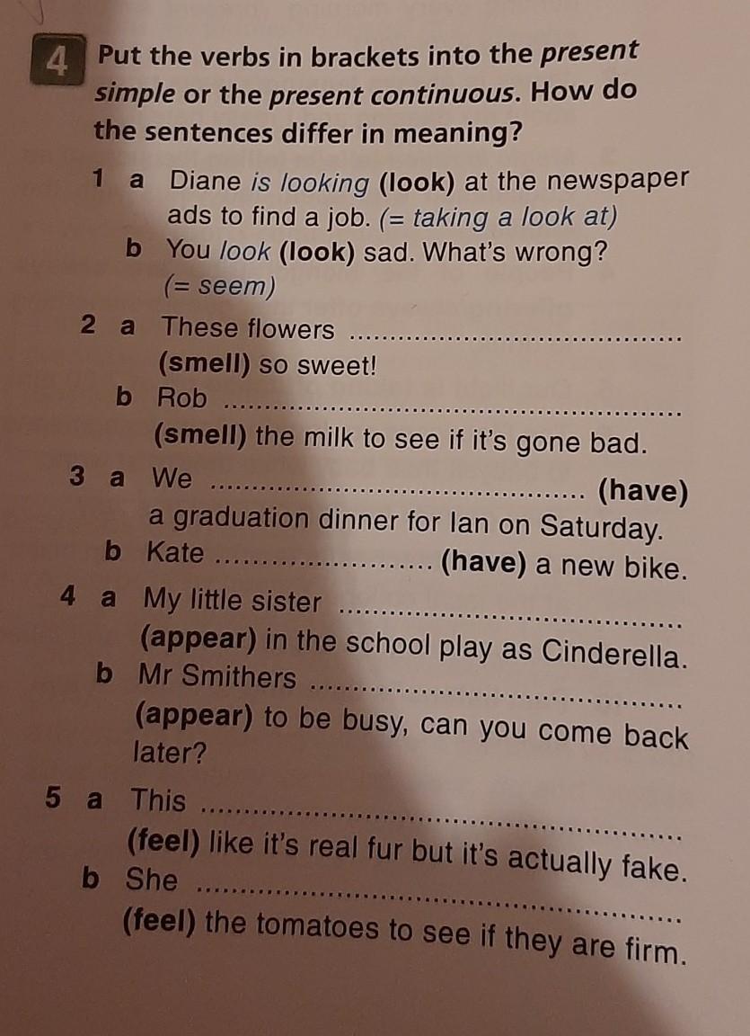 Put the verbs in brackets into the present simple or the present continues. How do the sentences differ in meaning ?