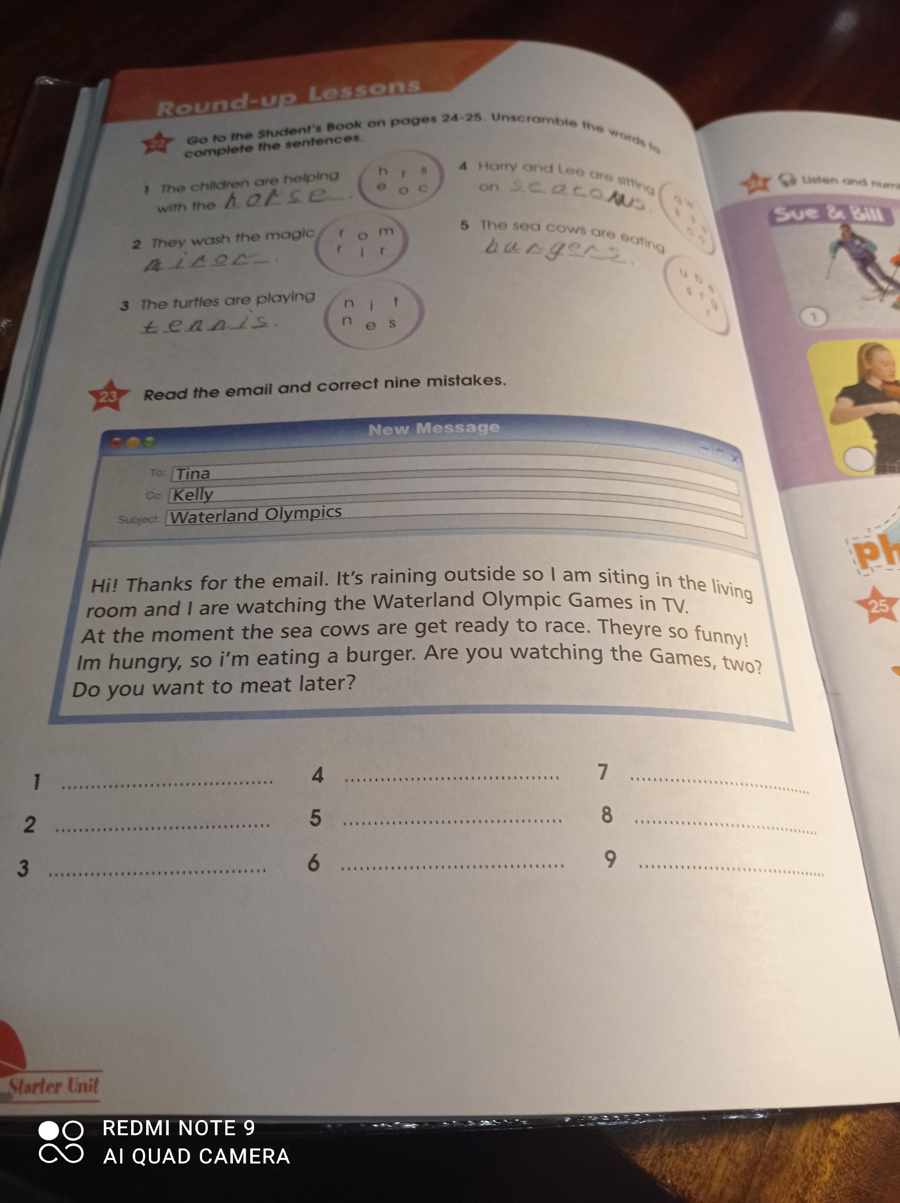 I am watching sitting on TV are getting ready for race they're I'm (i-incorrect) l'm eating (two-wrong)-too (meat)-meet
