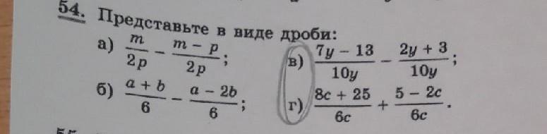 в) 7y-13/10y - 2y+3/10y = 7y-13-2y-3/10y = 5y-16/10y