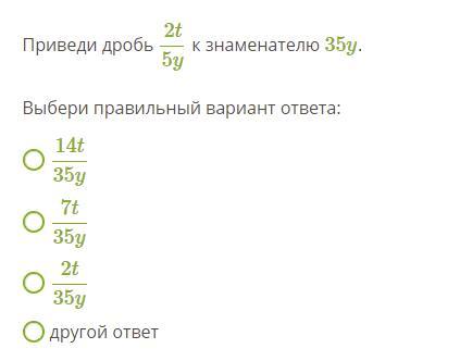 2t/5y умножаешь каждое число на 7, чтобы получился знаменатель 35 => 2t•7/5y•7 = 14t/35y