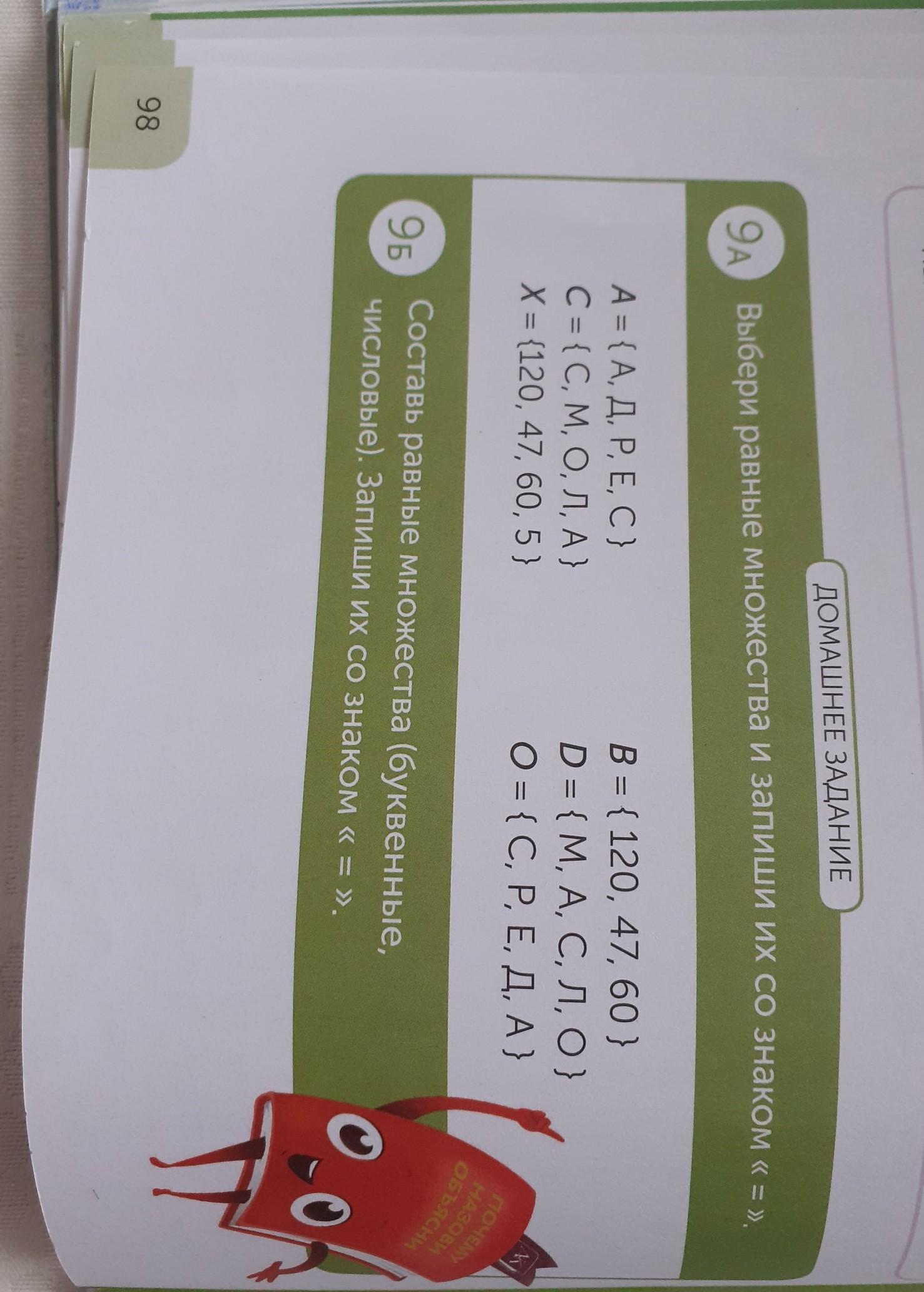 мне кажется тут всё понятно но объясню. эти два множества равны так как буквы внутри данного множества одинаковые.