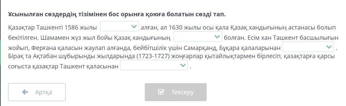 Ұсынылған сөздердің тізімінен бос орынға қоюға болатын сөзді тап.