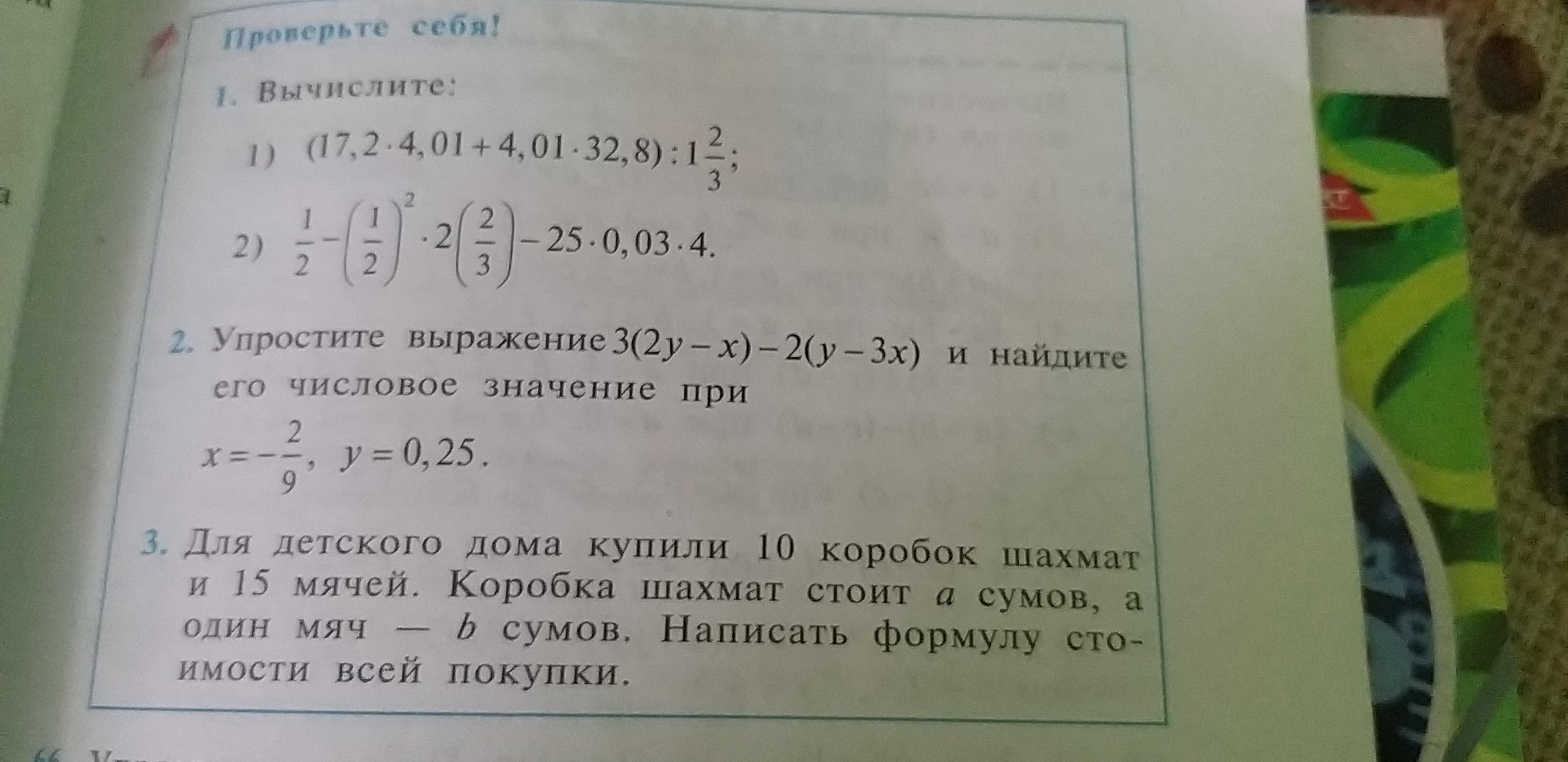 4y + 3x = 4*0,25 + 3* -(2/9) =
