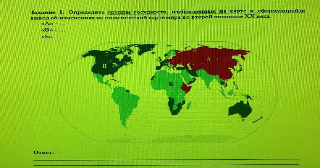 Определите группы государств изображенные накарте и сформулируйте вывод об изменениях на политической карте мира во второй половине ХX века .
