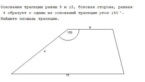 S(ABCD)=BH(BC+AD)/2=2(9+15)/2=24 ед²