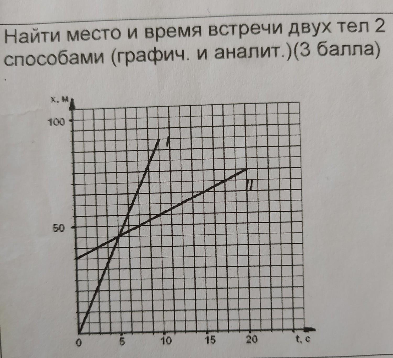 найти место и время встречи 2 тел двумя способами аналитически и графически