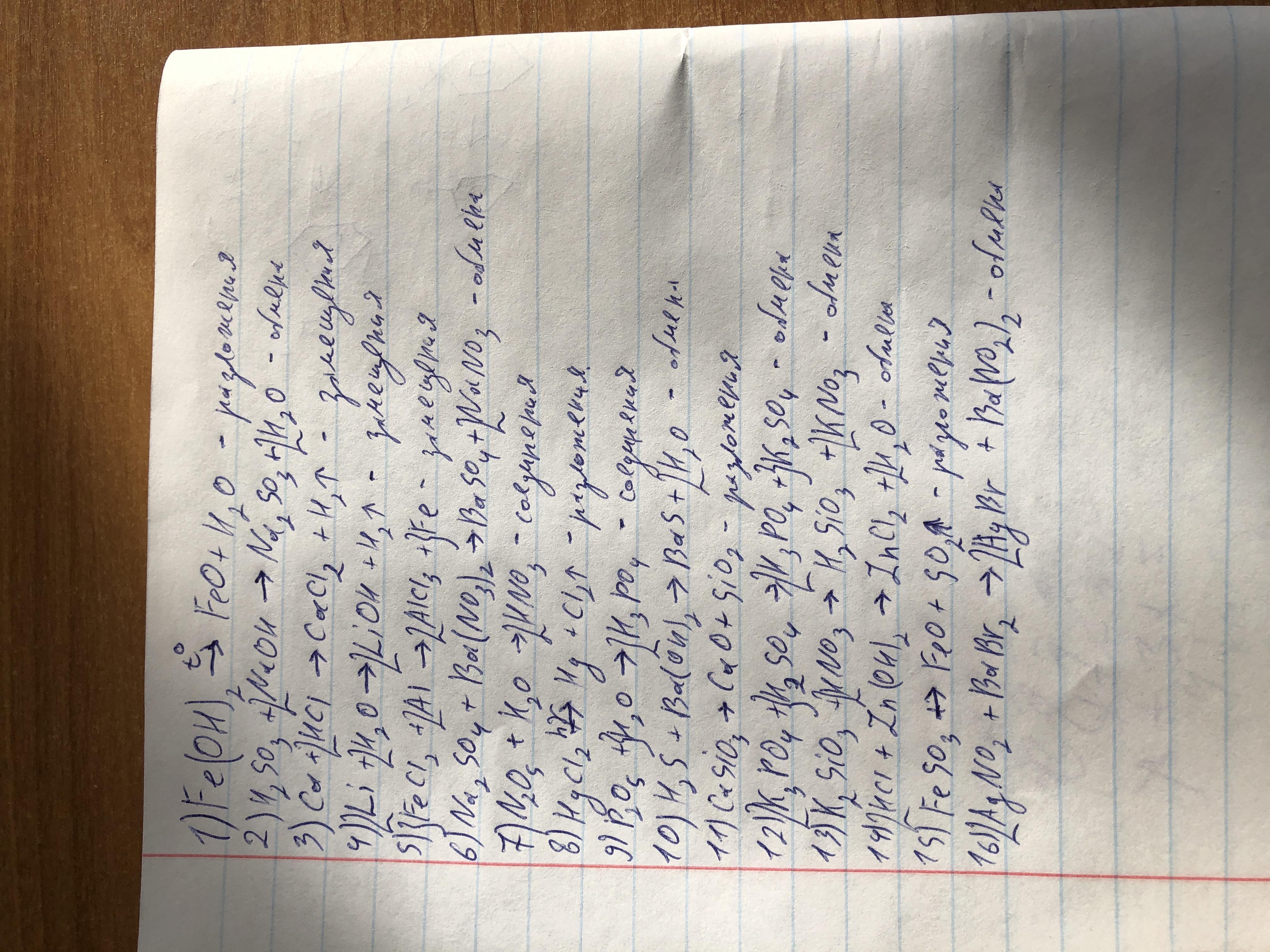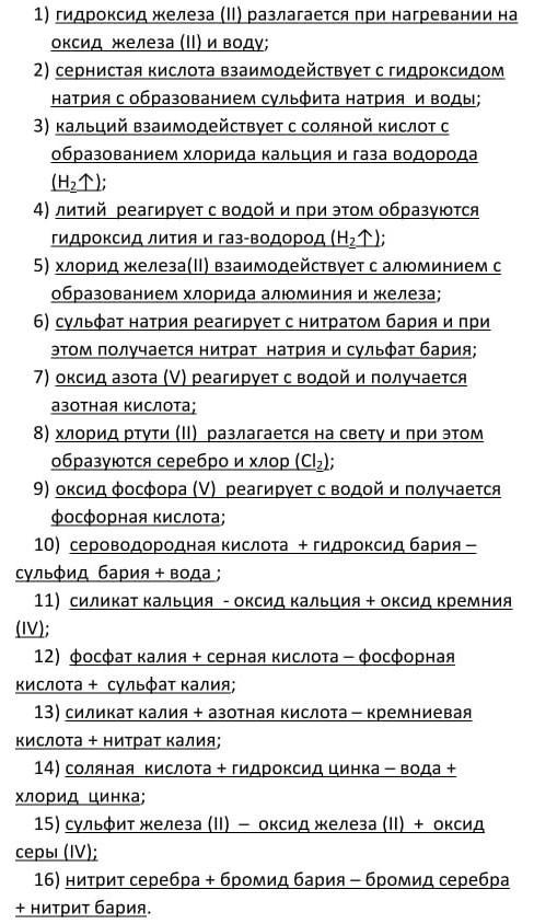 составьте уравнения химических реакций по описанию, расставьте коэффициенты, определите типы реакци