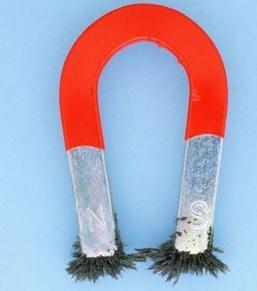 Шпильки притянутся к полюсам магнита, приблизительно так, как показано на иллюстрации: