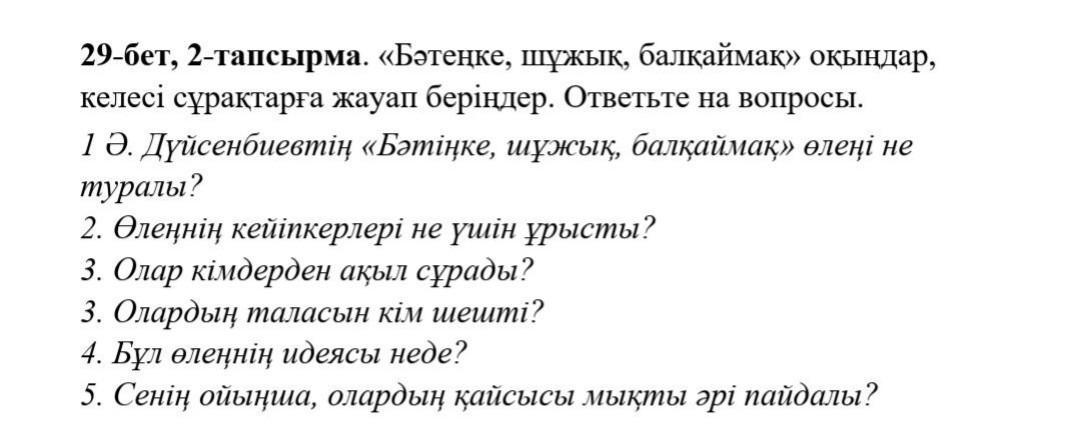 5.Бәтеңке, себебі оны киюге болады.Ал шұжық пен балқаймақ бір күндік ас