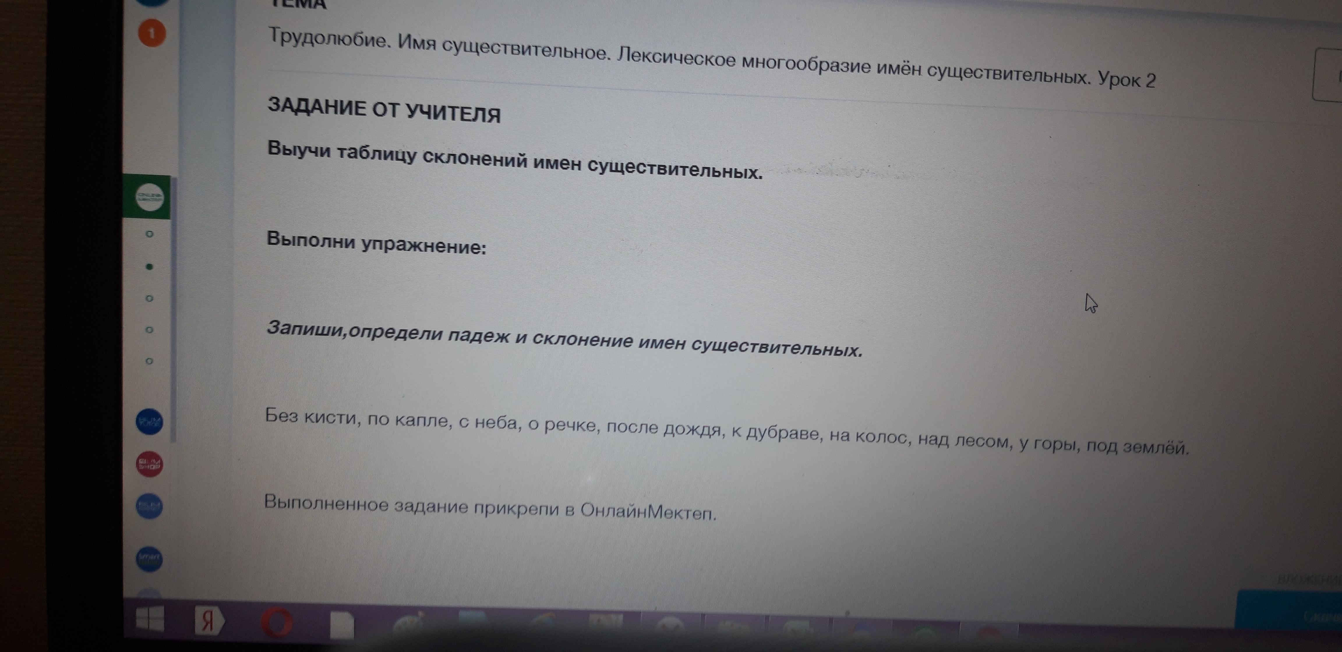 Помагите пожалуйста. Запиши, определи падеж и склонение имен сущиствительных. Если что 4класс Онлайн Мектеп Урок: Русский Язык