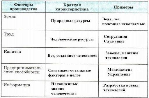 Заполните таблицу «Факторы производства». Укажите в таблице не менее 4 факторов производства.
