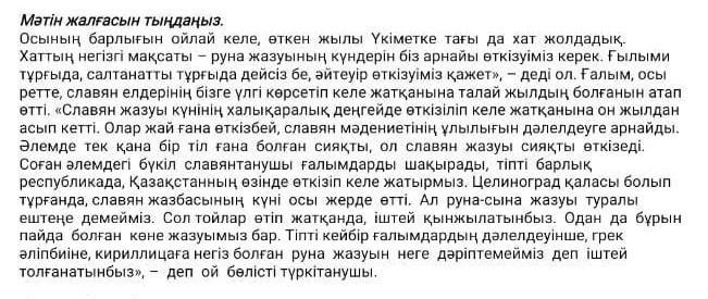 Мәтін жалғасын тыңдаңыз . Осының барлығын ойлай келе , өткен жылы Укіметке тағы да хат жолдадық . Хаттың негізгі мақсаты руна жазуының күндерiн бiз арнайы өткiзуiмiз керек . Ғылыми тұрғыда , салтанатты тұрғыда дейсіз бе , әйтеуір еткізуіміз қажет » , - деді ол . Ғалым , осы ретте , славян елдерiнiң бiзге үлгі көрсетіп келе жатқанына талай жылдың болғанын атап етті . « Славян жазуы күнiнiң халықаралық деңгейде өткiзiлiп келе жатқанына он жылдан асып кетті . Олар жай ғана өткiзбей , славян мәдениетінің ұлылығын дәлелдеуге арнайды . Әлемде тек кана бiр тiл ғана болған сияқты , ол славян жазуы сиякты еткiзедi Соған әлемдегі бүкіл славянтанушы ғалымдарды шақырады , тіпті барлық республикада , Қазақстанның өзінде өткізіп келе жатырмыз . Целиноград қаласы болып тұрғанда , славян жазбасының күні осы жерде өтті . Ал руна - сына жазуы туралы ештеңе демейміз . Сол тойлар етіп жатканда іштей қынжылатынбыз . Одан да бұрын пайда болган көне жазуымыз бар . Тіпті кейбір ғалымдардың дәлелдеуінше , грек әлiпбиiне , кириллицаға негіз болған руна жазуын неге дәріптемеймiз деп iштей толғанатынбыз » , - деп ой белiстi түркітанушы .