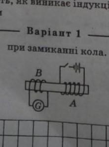 Поясніть,як виникає індукційний струм у замкненому на гальванометр витку і знайдіть його напрям при замиканні кола.