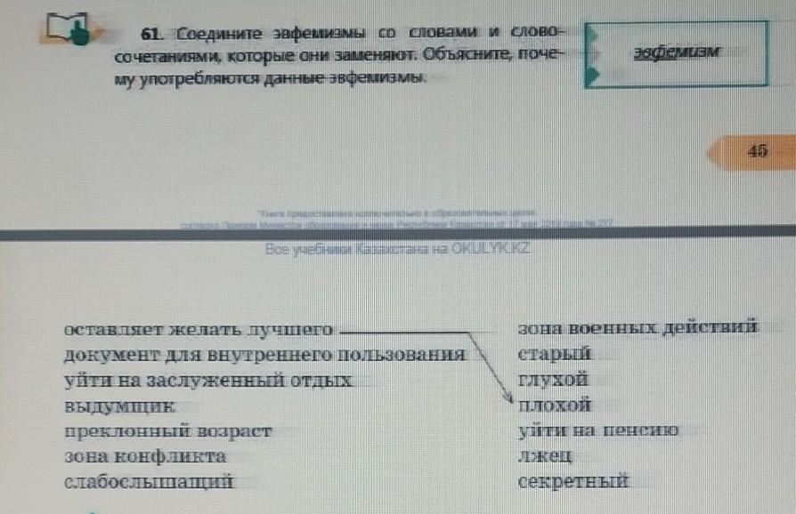 61. Соедините зафемизмы со словами и слово сочетаниями, которые они заменяют. Обьясните, почему употребляются данные авфемизмы: