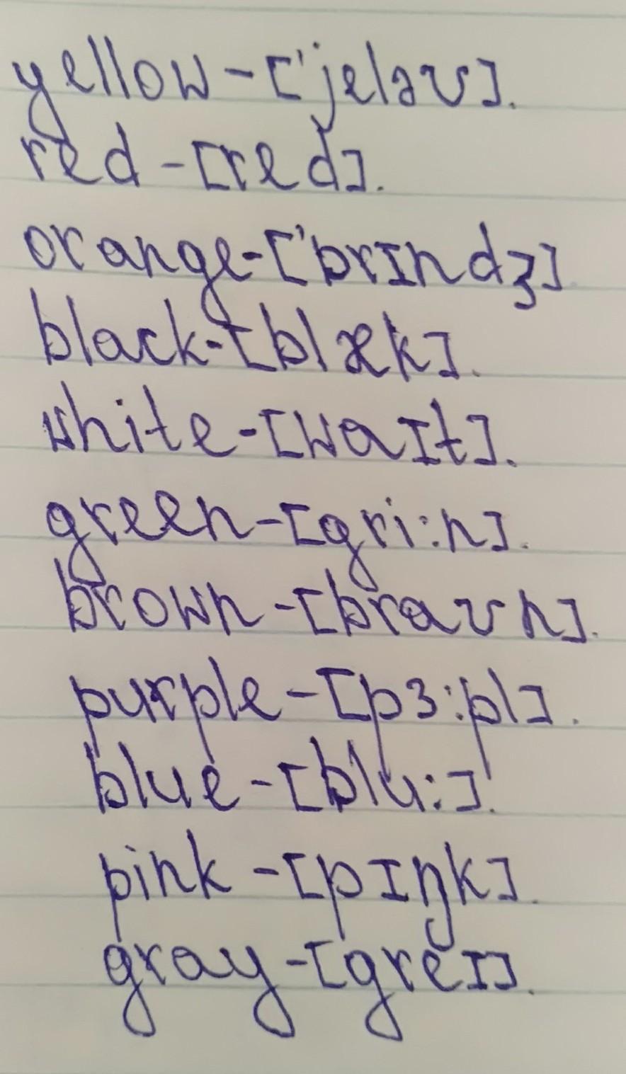 транскрипции цветов по английски на пишите по английски : жёлтый, красный, оранжевый, чёрный, белый, зелёный, коричневый, фиолетовый, синий, розовый, серый. Помагите пржалуста!