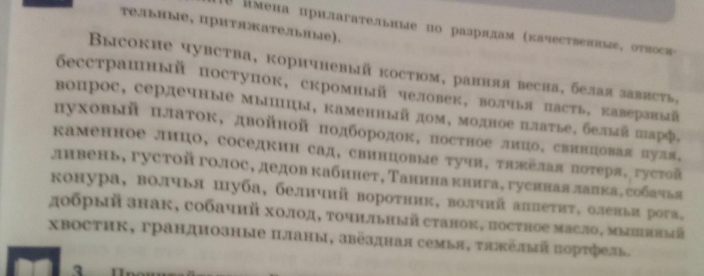 Качественные прилагательные обозначают меняющееся свойство: коричневый, ранняя, бесстрашный, скромный, каверзный, модное, белый, свинцовые (тучи), густой (волос), добрый, постное (лицо), тяжелый, грандиозные.