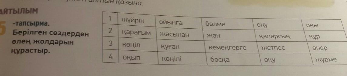 5-тапсырма.Берілген сөздерден өлең жолдарын құрастыр.