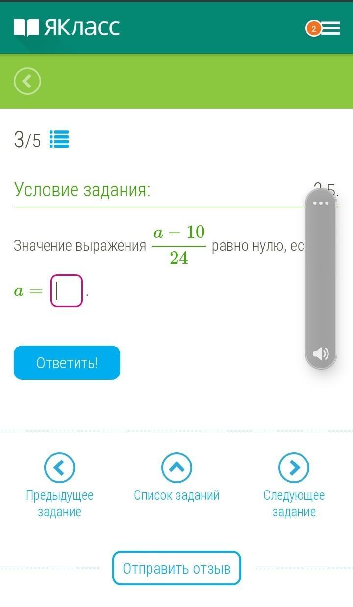 Помогите срочно дам 20 баллов за одно задание!!!значение выражения a-10/24 равно нулю,если а=?