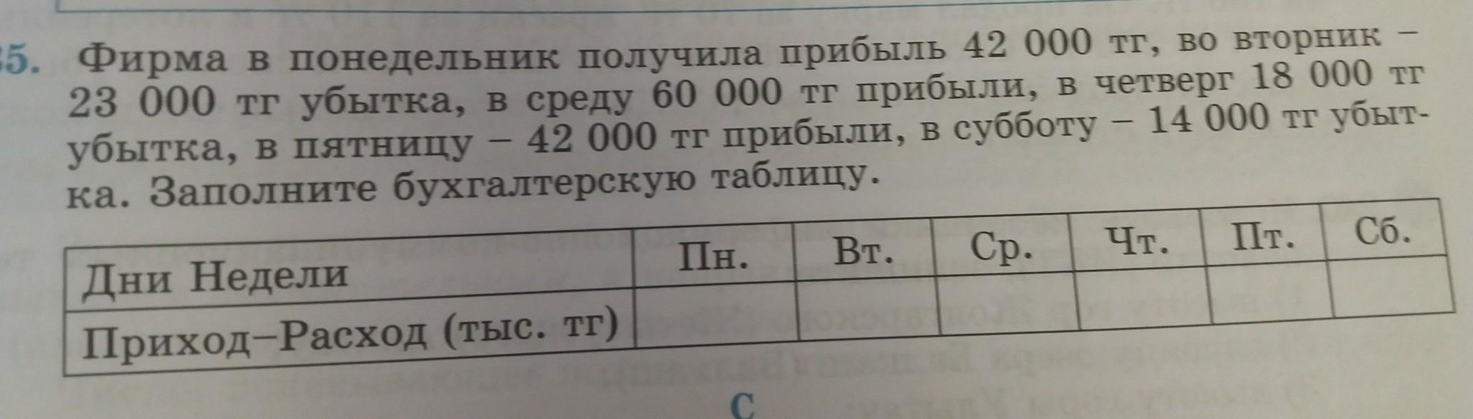 +42 тыс. тенге -23 тыс. тг +60 тыс. тг -18 тыс. 42 тыс. тг -14 тыс. тг