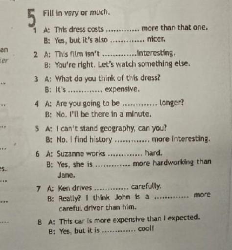 1- much, much; 2- very; 3- very; 4- much; 5- much; 6- very, much; 7- very, much; 8- very