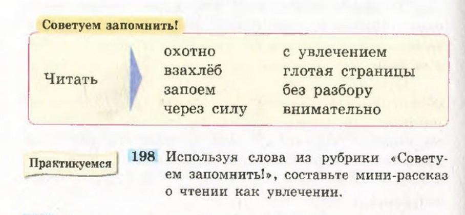 Надо составить текст из этих слов например: Маша читает прям глотая страницы! И т.д как ваша фантазия только должны быть эти слова.
