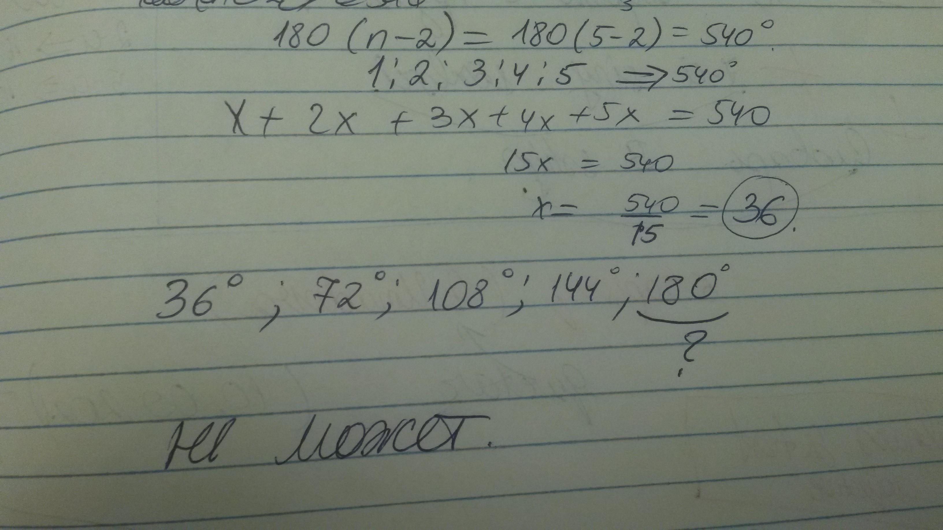 Могут ли значения внутренних углов пятиугольника быть пропорциональны первым пяти целым положительным числам?