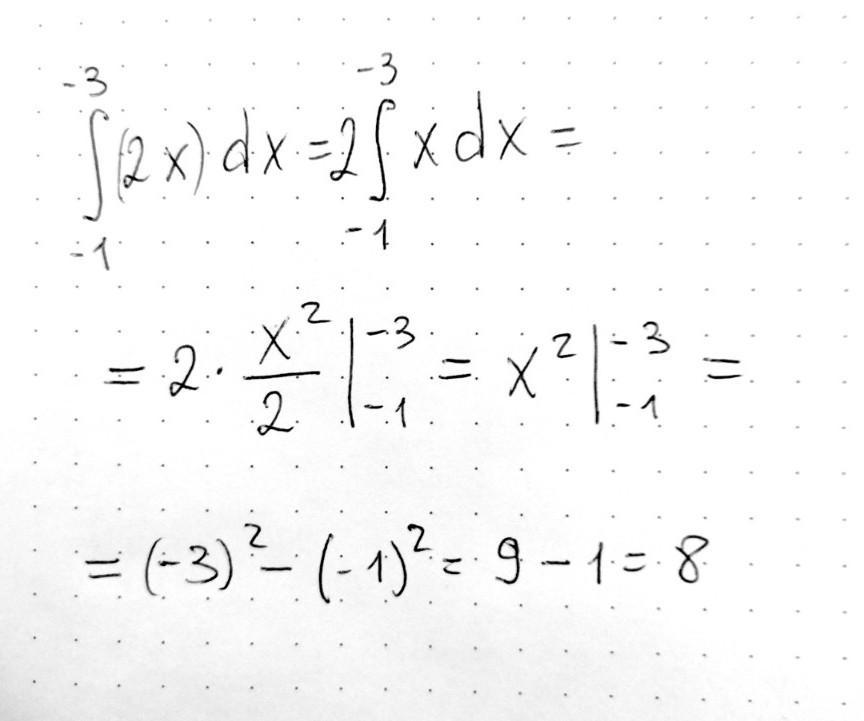 Чему равен определенный интеграл от функции f(x)=2x, если верхний предел интегрирования равен - 3, а нижний - 1?