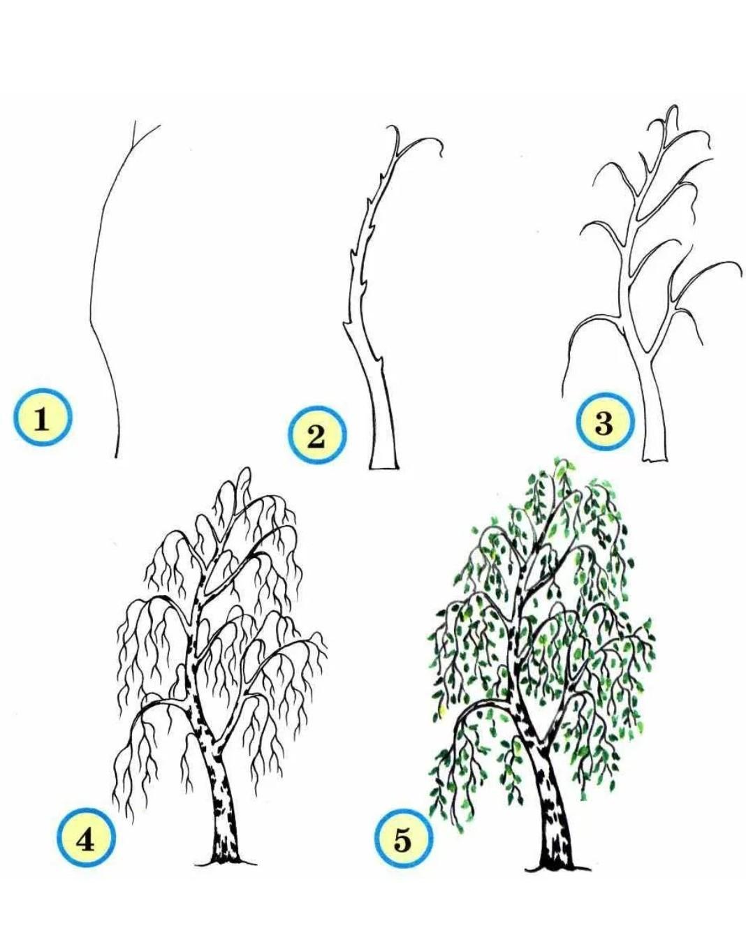 В качестве иллюстрации можно нарисовать березовую рощу или крапиву. Вот так рисуется берёза и крапива: